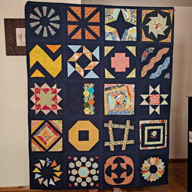 So that was how I got hooked.  I continue making discoveries as I move along on this quilting journey.  I definitely enjoy making a quilt completely my own from beginning to end more than using someone else’s pattern.  I really enjoy improv piecing and I want to keep experimenting with that. Surprisingly, I actually enjoy every portion of the quilt-making process, even some of the more tedious aspects such as pressing all of the fabric before cutting or squaring up a bunch of half-square triangles or even pin basting.  Most of all, I really love learning new techniques and trying to become a better craftsperson.