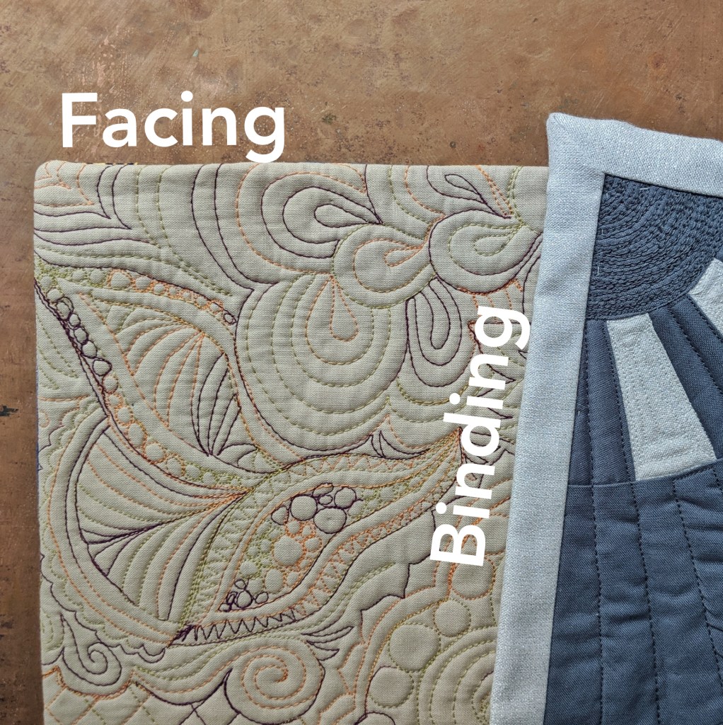 After you’ve squared it up, it’s time to add the binding or facing, which are two different techniques to cover up the raw edges.