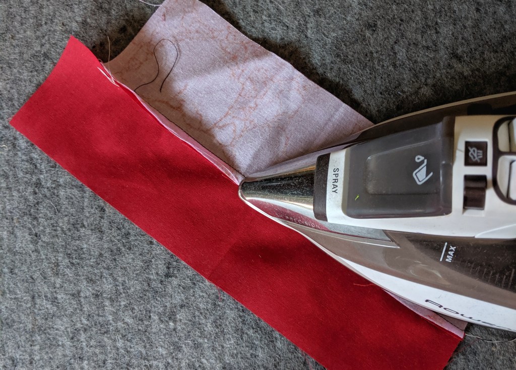 Once you’ve pieced two pieces of fabric together, you need to press the seam with an iron.