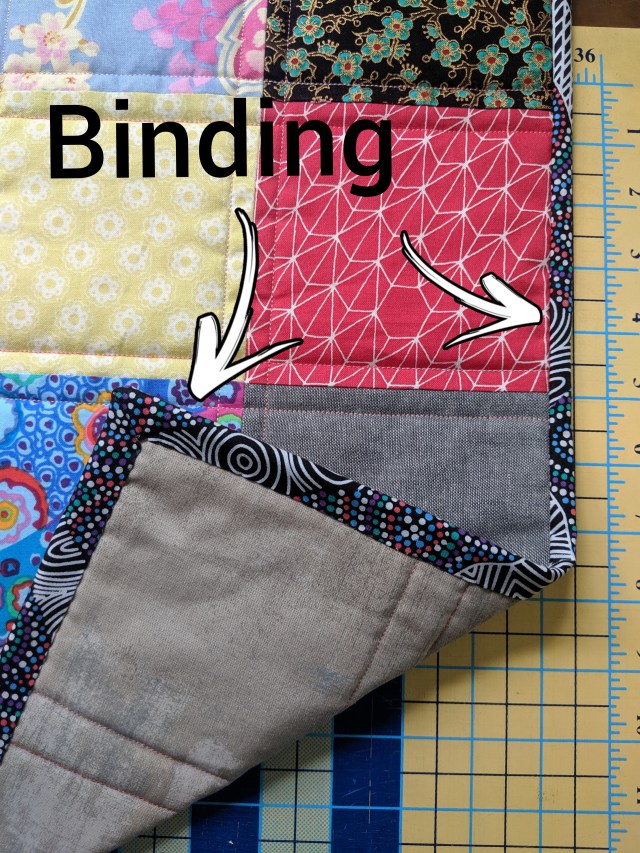 In the case of this quilt, I had already decided to add the black outer border as a solid frame, so I decided a simple black binding that blended in would be the perfect way to finish it. I generally machine sew the binding onto the front of the quilt and then hand stitch it to the back. I really love how it looks on both sides when I use that technique.
